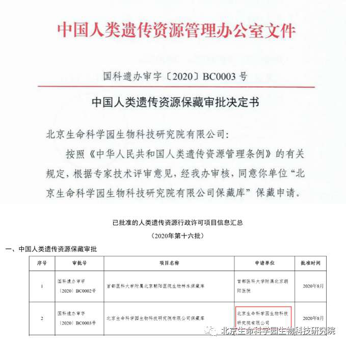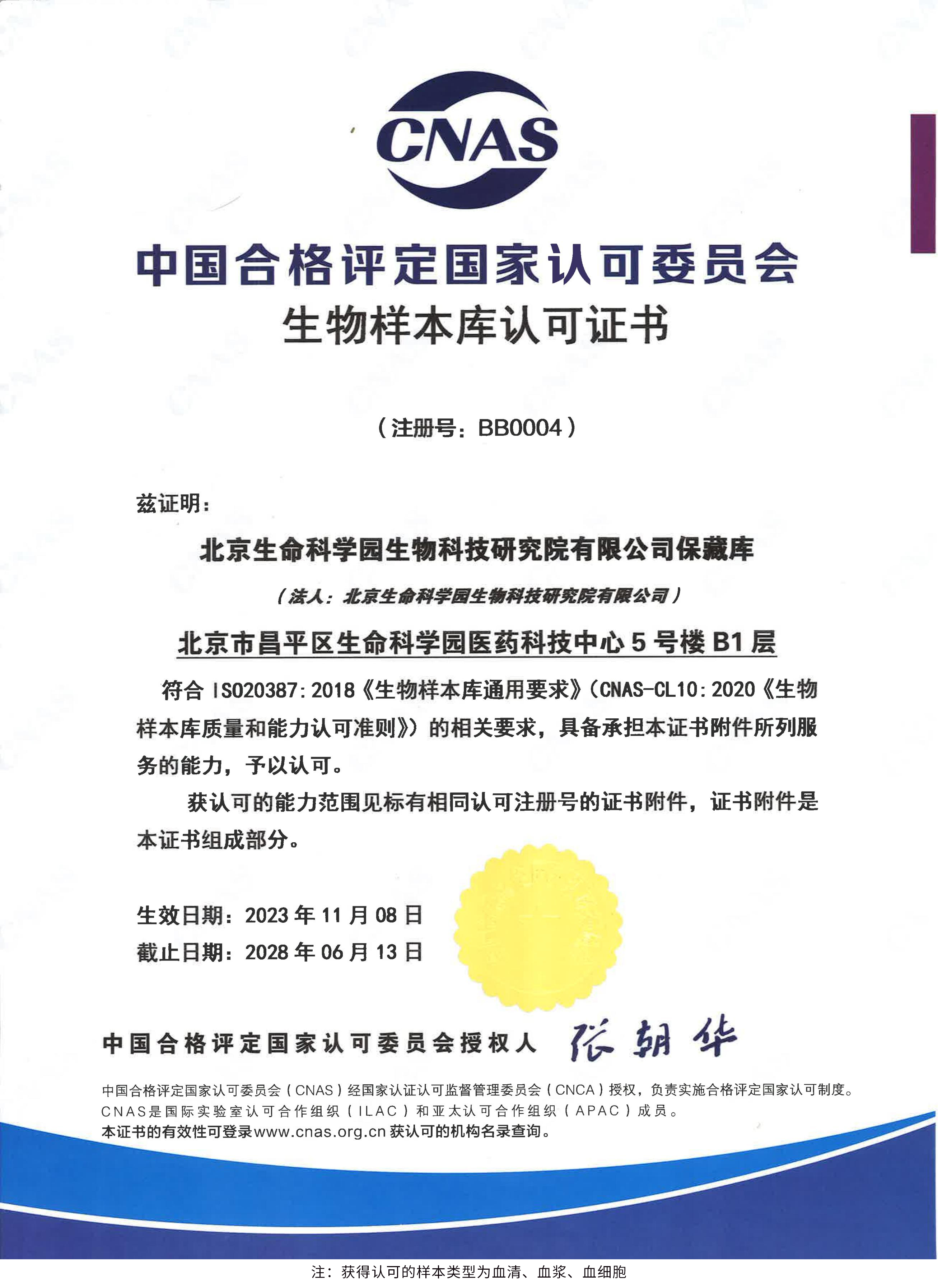 北京生命科學園生物科技研究院(以下簡稱“北京生物樣本資源庫”)(Biobank of Life Science Park,簡寫“BoLSP”)是一家由北京市科委和中關(guān)村生命科學園共同支持設(shè)立的第三方生物樣本庫公共服務(wù)平臺,秉承北京重大疾病臨床數(shù)據(jù)和樣本資源庫(以下簡稱“北京庫”)(Beijing Biobank of Clinical Resources,BBCR)十余年的發(fā)展成果,聚合眾多臨床樣本專家的專業(yè)共識,致力于在生命科學、生物醫(yī)藥研究領(lǐng)域發(fā)揮銜接樣本資源持有者與研究者的橋梁作用,解決生物樣本資源開發(fā)上下游信息不對稱、資源共享困難等問題。研究院在北京中關(guān)村生命科學園昌平園區(qū)建立了2000㎡生物樣本庫,最大存儲規(guī)模達1000萬份。研究院遵循CNAS-CL10:2020《生物樣本庫質(zhì)量和能力認可準則》,同時結(jié)合北京庫過去十年的工作經(jīng)驗與教訓,建立了一套完善的生物樣本保藏質(zhì)量管理體系,從人、機、料、法、環(huán)、控多個角度,實現(xiàn)生物樣本保藏過程的全面質(zhì)量控制,先后獲得國家科技部頒發(fā)的人類遺傳資源保藏行政許可證書和中國合格評定國家認可委員會(China National Accreditation Service for Conformity Assessment,CNAS)頒發(fā)的“CNAS認可證書”。